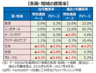 アジア・オセアニアのリート市場の動向(2017年8月)