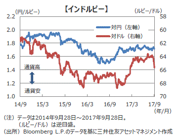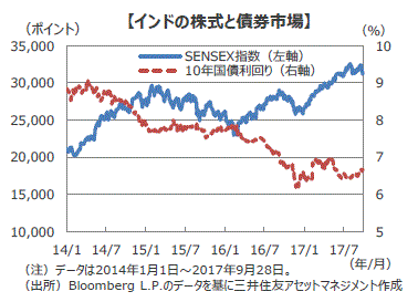■インド株式市場は、景気の持ち直しに加え、中長期的にはGST導入による経済の効率化から企業の利益成長加速が期待されるため、堅調さを取り戻すと見られます。インドの債券市場は景気対策に伴う財政悪化懸念の織り込みが進んだと見られること、インフレの上昇はある程度抑制される見込みであることから、更なる金利上昇余地は限られ、落ち着きを取り戻すと思われます。インドルピーは、経済の高成長や改革期待を背景に資金流入が期待されるため、対ドルで底堅く推移する見込みです。
