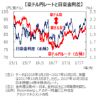 ■日豪金利差の拡大等により、最近の豪ドルの対円相場は堅調に推移しています。今回の金融政策決定会合直後の豪ドルは、事前の予想通り政策金利の据え置きが決定されたことから、主要通貨に対して小動きにとどまりました。