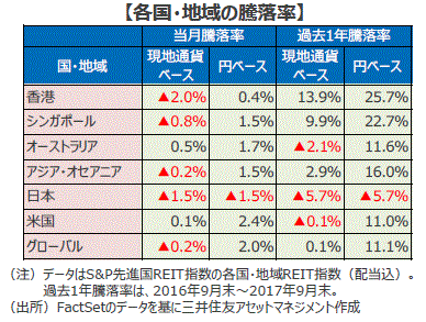 アジア・オセアニアのリート市場の動向(2017年9月)