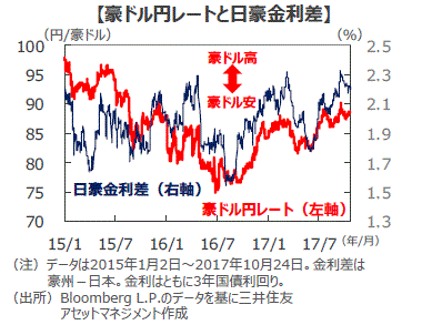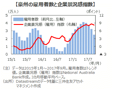 ■RBAは、10月3日開催の金融政策決定会合で、政策金利を1.50%に据え置きました。雇用は堅調ですが、①足元の失業率が完全雇用に対応する水準と見られる5.2%を僅かに上回っている、②個人消費に勢いが欠ける、③物価上昇率がRBAの目標レンジに到達していない等から判断すると、金融政策は今後も中立が維持される見通しです。