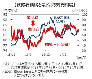 ■2017年の豪州の実質GDP成長率は前年比2.2%程度と、前年の同2.6%から鈍化したと見られます。融資規制の強化やハリケーンの影響で、住宅投資が落ち込んだ等のためです。住宅を除く非資源セクターは概ね堅調に推移、資源セクターも資源価格の持ち直しを受け最悪期を脱しつつあります。豪州経済の実体は見掛けよりも良好と考えられます。