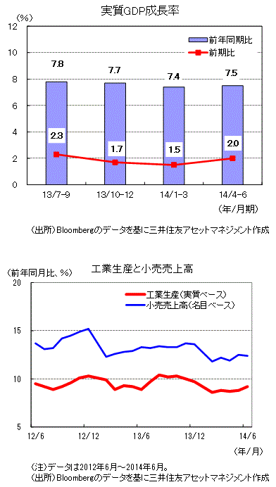 4-6月期の実質GDP成長率は前年同期比+7.5%と、3四半期ぶりに鈍化に歯止めがかかりました。前期比では+2.0%と、持ち直しがより明確に見られ、3四半期ぶりの伸び幅となりました。