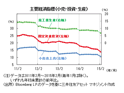■全人代では、新常態を目指す成長戦略の一つとして、労働集約的な製造業からITや先端技術を活用した付加価値の高い製造業への転換を狙う、「製造強国」計画が公表されました。今後、こうした構造改革の進展が企業業績の改善などに反映することが期待されます。企業業績が実際に上向くことが、株価上昇持続のポイントと見られます。