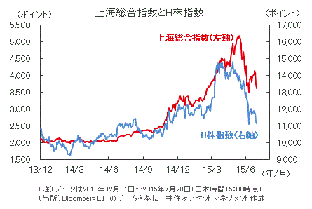 ■6月半ば以降の下落局面では、多くの銘柄が売買停止となり、一時上海、深セン両市場上場銘柄の半数程度に達しました。その後徐々に売買が再開し、27日の急落では売買再開銘柄への売り圧力が強まりました。また、急落の要因として、政府・当局による株価対策が縮小されるとの観測もあります。株価対策は、市場の価格形成に影響を及ぼすため、一般に好ましいとは言えませんが、市場の変動性を抑えるために今後も何らかの対策が打たれる可能性があります。