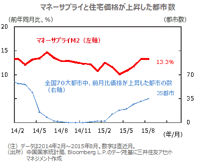 ■一方、8月の鉱工業生産と小売売上高は、前年同月比の伸びが若干ながら上向きました。住宅価格が前月比上昇する都市数も増加し、住宅市場の底入れがうかがわれ、サービス経済は比較的落ち着いています。