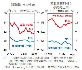 最近の指標から見る中国経済(2015年11月) 製造業の下振れ続くが、非製造業が下支え【デイリー】