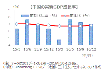 ■中国国家統計局が、20日に公表した2016年10-12月期の国内総生産(GDP)は、物価変動を除く実質値で前年同期比+6.8%でした。市場予想(ブルームバーグ)の同+6.7%、7-9月期の同+6.7%を僅かながらも上回りました。