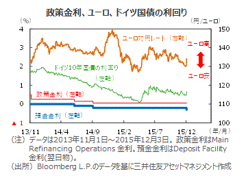 ■ドイツ国債の利回りは、強力な金融緩和が続くことから、低位での推移が見込まれます。為替市場では、米国の利上げが予想され、ユーロは対米ドルで弱含み、対円では日銀の緩和姿勢から方向感が出にくいと見られます。株式市場では、強力な金融緩和と堅調な企業業績を背景に、底堅い展開が予想されます。