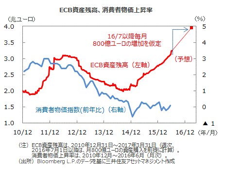 ■ECBの追加緩和策としては、まず、17年3月までの実施が公約されている量的金融緩和の終了時期延長が挙げられます。更に、ECBの国債買い取り条件を緩めること等も考えられます。ECBの追加緩和が、英国のEU離脱に伴うユーロ圏経済への悪影響を和らげることが期待されます。