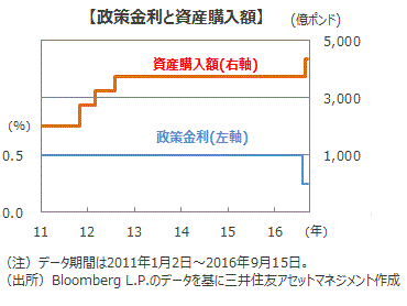 ■8月に拡大された量的緩和の規模も据え置かれました。国債購入を中心とした資産購入総額は4,350億ポンド、別途の社債購入枠は最大100億ポンドとなっています。