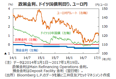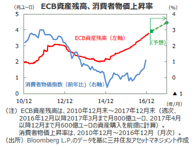 ■前回の理事会では、17年12月末までの量的緩和政策の延長が決定されましたが、そのうえで、必要であれば、18年以降の延長や購入ペースの拡大の可能性も示されています。物価が上昇していることを背景に、今後資産購入のペースは徐々に縮小し、18年末までにはゼロとなると見られます。