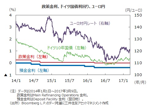 ■一方、国債などを買って市場に資金を供給する量的緩和政策は、購入規模を現在の月800億ユーロから4月以降、月600億ユーロに減額したうえで17年12月末まで継続することを確認しました。