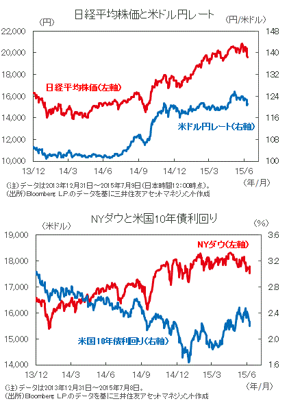 ■中国経済の世界経済への影響やギリシャ問題の進展については予断を許しませんが、中国当局の政策余地や主要国における金融緩和余地などを考慮すると、世界的な景気後退などは避けられそうです。日本株式市場を取り巻く好環境も変わりは無いと考えられます。日本株へのリスクとしては、米国の利上げが遅れる場合の円高進行などが考えられます。