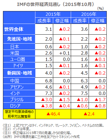 IMFの世界経済見通し(2015年10月) 世界経済は3%台の緩やかな成長続く【デイリー】