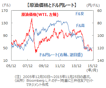 ■原油価格低迷が長期化しています。25日の原油価格(WTI)は、1バレル当り43.0ドルと、リーマン・ショック後の安値近辺での推移となっています。
