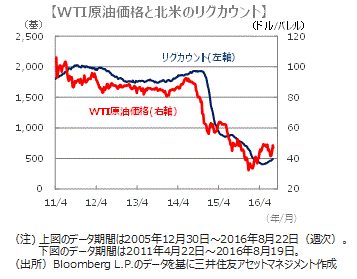 ■2月以降、上昇基調で推移してきた原油価格は、7月には軟調に転じ、8月2日には1バレルあたり40ドルを割り込む水準まで下落しました。需給改善が進まないうえ、複数の産油国で発生していた生産障害の回復や、米国のリグカウント(新規の石油井戸の掘削数)の増加が背景です。