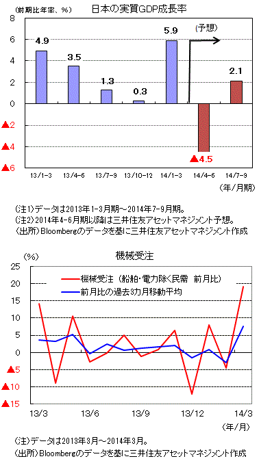 4-6月期は駆け込み需要の反動減などでマイナス成長が見込まれますが、消費や輸出が緩やかに回復することで、7-9月期には回復に向かうと思われます。