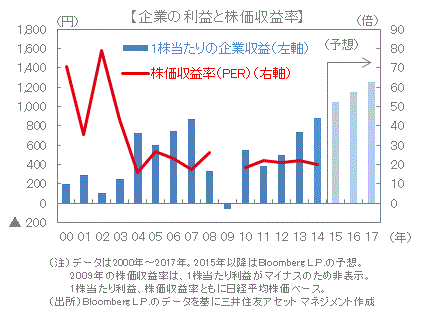 ■また、2015年の企業収益予想は、約2カ月前の前年比+5%から直近では同+19%に上向いており、過去最高を更新する見込みです。