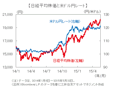 ■好調な企業収益を背景に、株価は2000年来の高値更新が続いています。中国の景気減速懸念やギリシャ情勢の不安などの不透明要因もあり上値を押さえられる場面も想定されますが、基調としては、企業収益の拡大に沿った展開が期待されます。