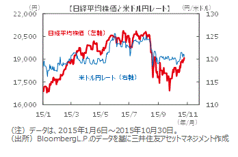 ■日経平均株価は、世界的な株価下落のなか、9月29日には16,900円近くまで下落しましたが、その後、中国の景気失速懸念が薄らいだことや、欧州の追加緩和期待などから30日には、1万9,000円台にまで回復しました。先行きにまだ不透明感はあるものの、基調としては、企業収益の拡大に沿った展開が期待されます。