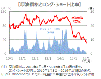 ■相場の⾏き過ぎを示す指標もあり、目先は落ち着きどころを探る展開になるとみられます。中国景気の安定化見通しに加え、原油先物のポジションは、これ以上売りを積み上げにくい水準にあることから、これらリスク要因は徐々に落ち着く方向と見られます。