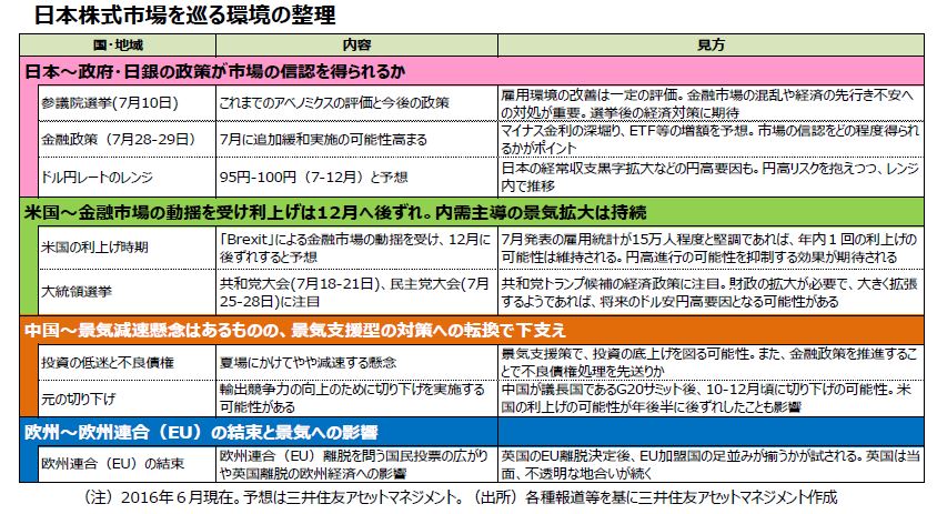 ■日本の株式市場は、英国の欧州連合(EU)離脱決断以降、大幅な調整を余儀なくされていましたが、原油市況の反発や、欧米株式市場の株安が一服したことなどから落ち着きを取り戻しつつあります。