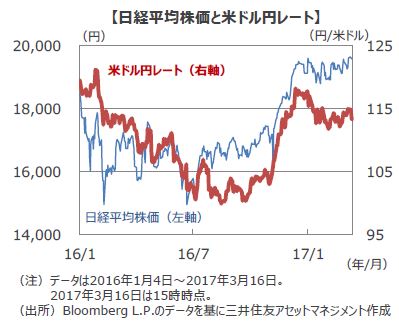 ■今回の金融政策の据え置きは市場予想通りで、金融市場では大きな反応はありませんでした。しかし、前夜の米連邦公開市場委員会(FOMC)では利上げが実施されたなかでも、利上げペースの高まりを示唆する内容ではなかったことから、前日に比べやや円高となっています。米国では年内にあと2回程度の緩やかなペースでの利上げが予想されています。このため、日米金利差は拡大すると考えられ、米ドル高・円安要因となりそうです。また、米国が緩やかながらも着実に利上げを行い、円安傾向となれば、輸出企業を中心に企業収益が上向くなど、日本経済にとって良好な環境となることが期待されます。