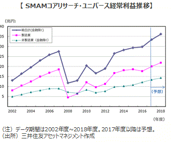 ■当社の集計(SMAMコアリサーチ・ユニバース224社( 金融除く)、6月時点)によれば、2016年度の経常利益は30.7兆円(前年度比+2.6%)の増益となり、3期連続の過去最高益更新となりました。