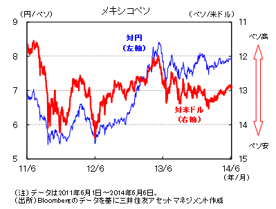 政府の財政支出拡大、米国景気の回復などから、メキシコの景気見通しは今後改善すると見られ、ペソは底堅い展開となりそうです。また、政府はエネルギーや通信など各産業の構造改革を進めており、エネルギー部門に関しては、外資の導入による積極的な投資などを可能とする関連法案が近く成立する見通しです。こうした経済構造改革の進展期待も、ペソを支える要因になると思われます。