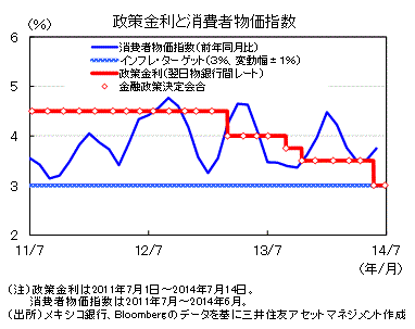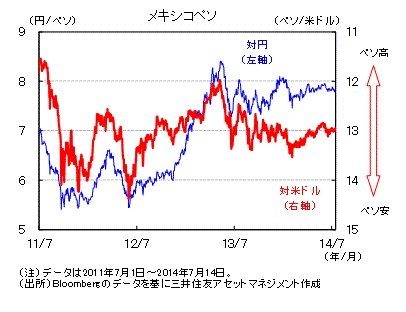 加えて、政府はエネルギー部門に外資の導入を認めるなど、積極的な投資を可能とする構造改革を進めています。この改革を実施に移すために必要な関連法案は、遅くとも8月中には成立するとの見込みであり、その場合には、海外から投資資金の流入増加期待が高まり、ペソを支える要因になると思われます。