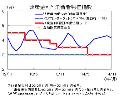 ■11月前半の消費者物価指数は前年同月比+4.16%と、中銀の物価目標(年+3%、変動幅±1%)の上限を超えています。