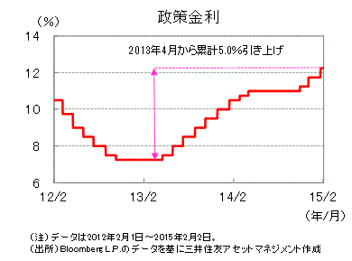 ■1月30日、レビ財務相が「人為的に通貨を強く維持する意図はない」と発言し、足元のレアル安の一因になりました。中銀は3月を期限としてレアル買いの為替介入を連日実施していますが、景気の低迷に配慮し、期限到来をもって打ち切るとの観測が広がりました。