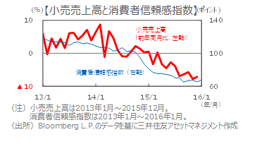 ■15年12月の小売売上高は、前年同月比▲7.1%とマイナスが続きました。物価高、金利高、ジカ熱の広がりなどから消費者心理の低迷が続いており、消費の持ち直しは期待しづらい状況です。