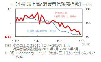 ■1月の小売売上高は前年同月比▲10.3%と、前月の同▲7.2%からマイナス幅が拡大しました。一方、消費者信頼感指数は1月に続き2月も上昇しました。