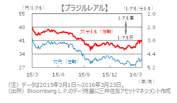 ■中国の景気不安や資源価格の下落が一服し、ブラジルレアルは足元で持ち直しつつあります。一方、景気低迷や汚職問題への不満などから大規模な反政府デモが発生し、議会ではルセフ大統領の弾劾手続きが始まりました。政治的不透明感から、レアルは当面振れの大きい展開となりそうです。