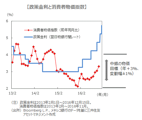 ■14日の米連邦準備制度理事会(FRB)による1年ぶりの利上げを受け、メキシコペソのさらなる下落とそれによる物価上昇圧力を抑えることが目的です。