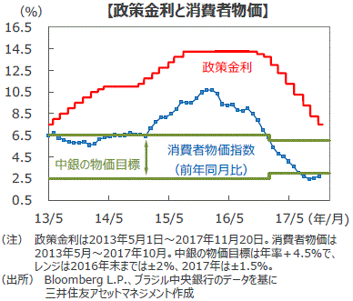 ■中銀は、最近の経済指標からブラジル経済は徐々に回復してきており、世界経済も好ましい環境にあると見ています。中銀は、インフレの落ち着きにより2016年10月から利下げを続けてきましたが、こうした経済環境から、緩やかに利下げペースを落としていくとしています。