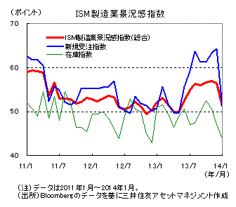 【デイリー No.1,791】米国のISM製造業景況感指数(2014年1月) ~寒波の影響により大きく低下~