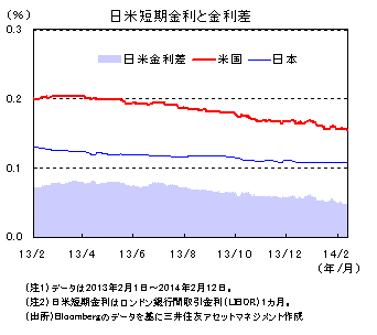 短期金利の動きをロンドン銀行間取引金利(LIBOR)で見ると、日米の低金利政策が続くと見込まれることから低位で安定的に推移し、日米短期金利差はほぼ横ばいとなりました。