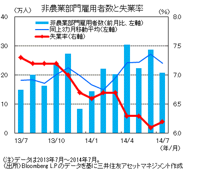 米国の雇用統計(2014年7月) 「質」改善は一服も、雇用者数は堅調に増加【デイリー】