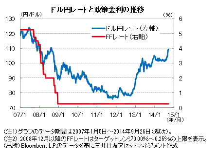 ■米国では、雇用の「質」の改善や物価上昇などが十分となると見込まれる2015年後半以降に利上げが行われると見込まれます。また、日米の景気や金融政策の方向性の違いなどから、今後も米ドル高円安基調が続くと見込まれます。