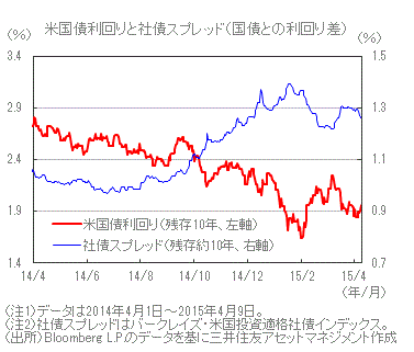 米国の債券市場(2015年4月) 早期利上げ観測の後退から、国債利回りは小幅に低下【デイリー】