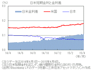 日米短期金利差は緩やかな拡大傾向