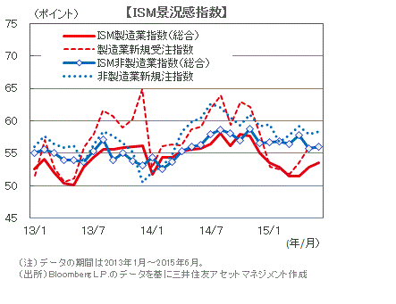 米国のISM景況感指数(2015年6月) 製造業、非製造業が揃って上昇【デイリー】