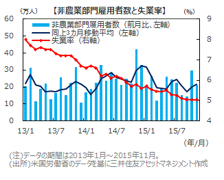 米国の雇用統計(2015年11月) 景気、雇用は順調に拡大【デイリー】