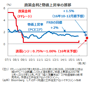 ■FRBは、15年12月に政策金利を0.25%引き上げ、誘導レンジを0.25%~0.50%としました。景気、雇用の改善が持続していることから、16年も引き続き利上げが実施される見通しです。