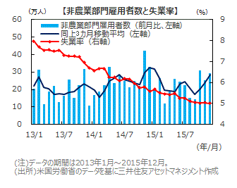 米国の雇用統計(2015年12月) 労働市場は改善の基調を維持【デイリー】