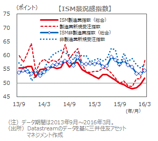米国のISM景況感指数(2016年3月)製造業、非製造業とも上昇局面に入ったことを示唆