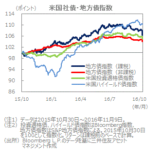 ■その後、米大統領選挙でトランプ候補が勝利し、上下院とも共和党が制した11月9日に利回りは大きく上昇し、今年1月下旬以来となる2%台に乗せました。トランプ氏の考える財政支出の拡大や減税が進むとの思惑が高まったためです。